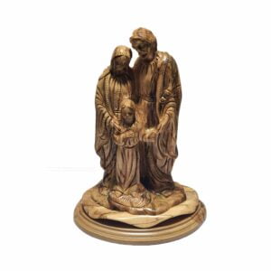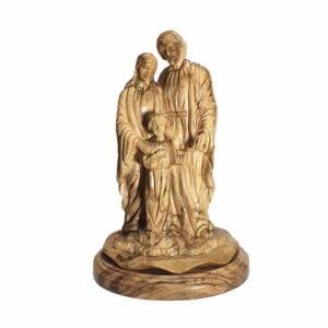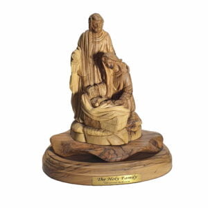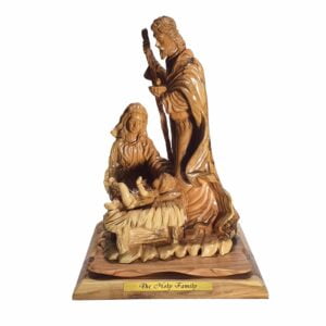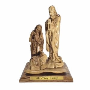 Modern Olive Wood Holy Family Holding a Lamp Statue