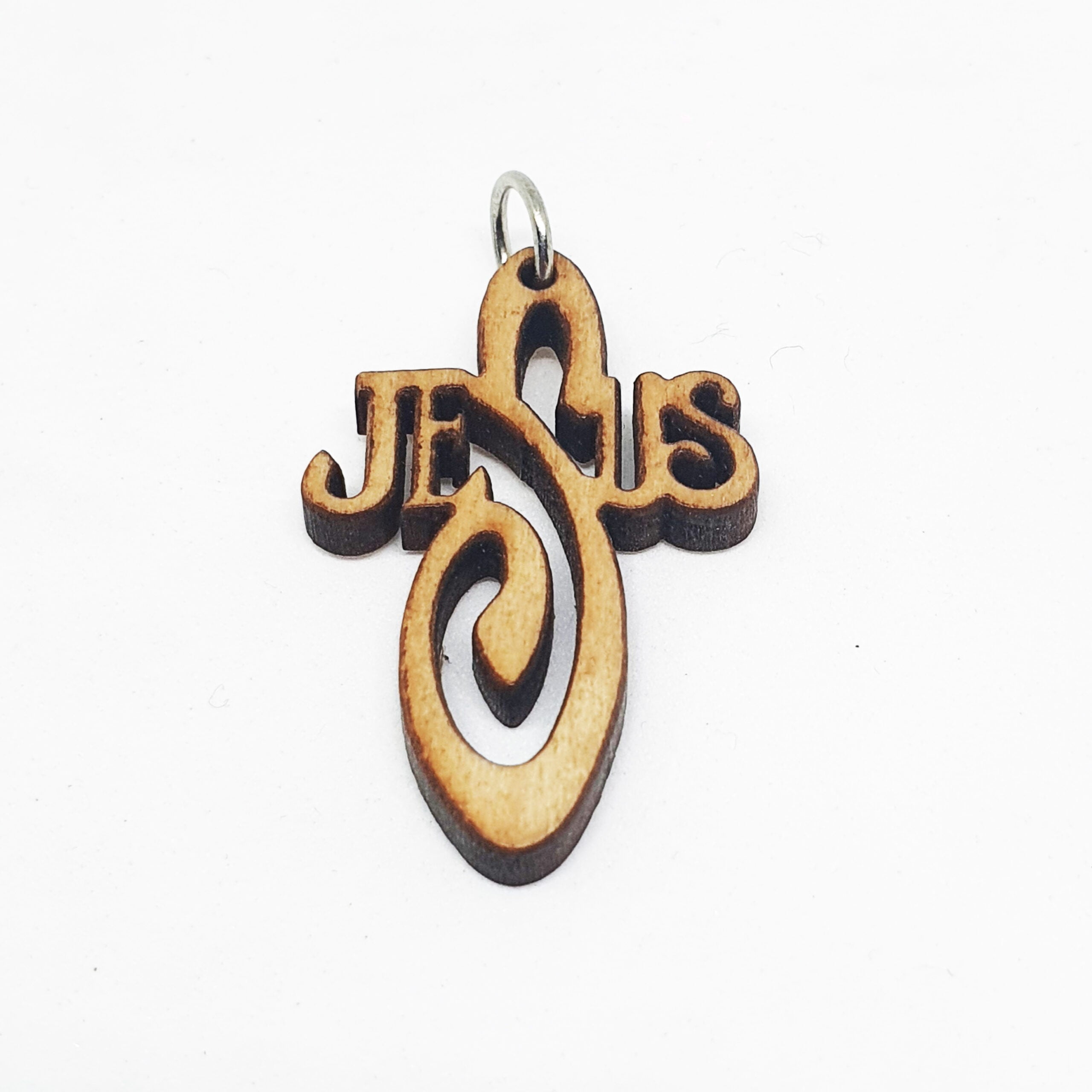 Wooden cross with Jesus name carved lettering Pendant quantity