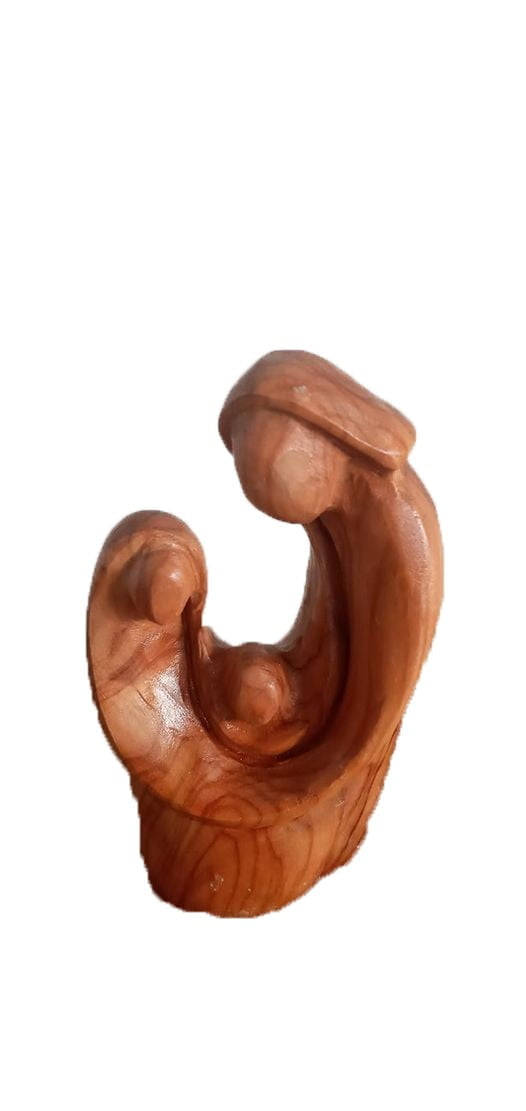 Faceless Olive wood hand carved in Bethlehem – The Holy Family consists of the Child Jesus, the Virgin Mary, and Saint Joseph.