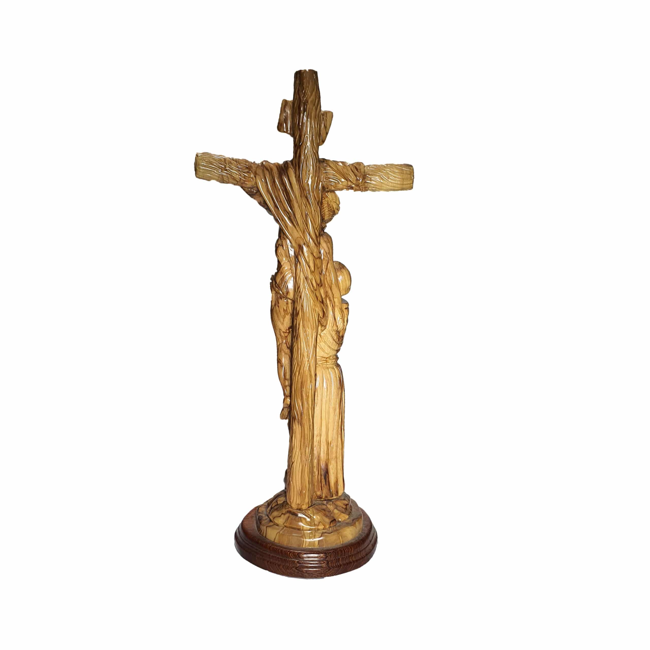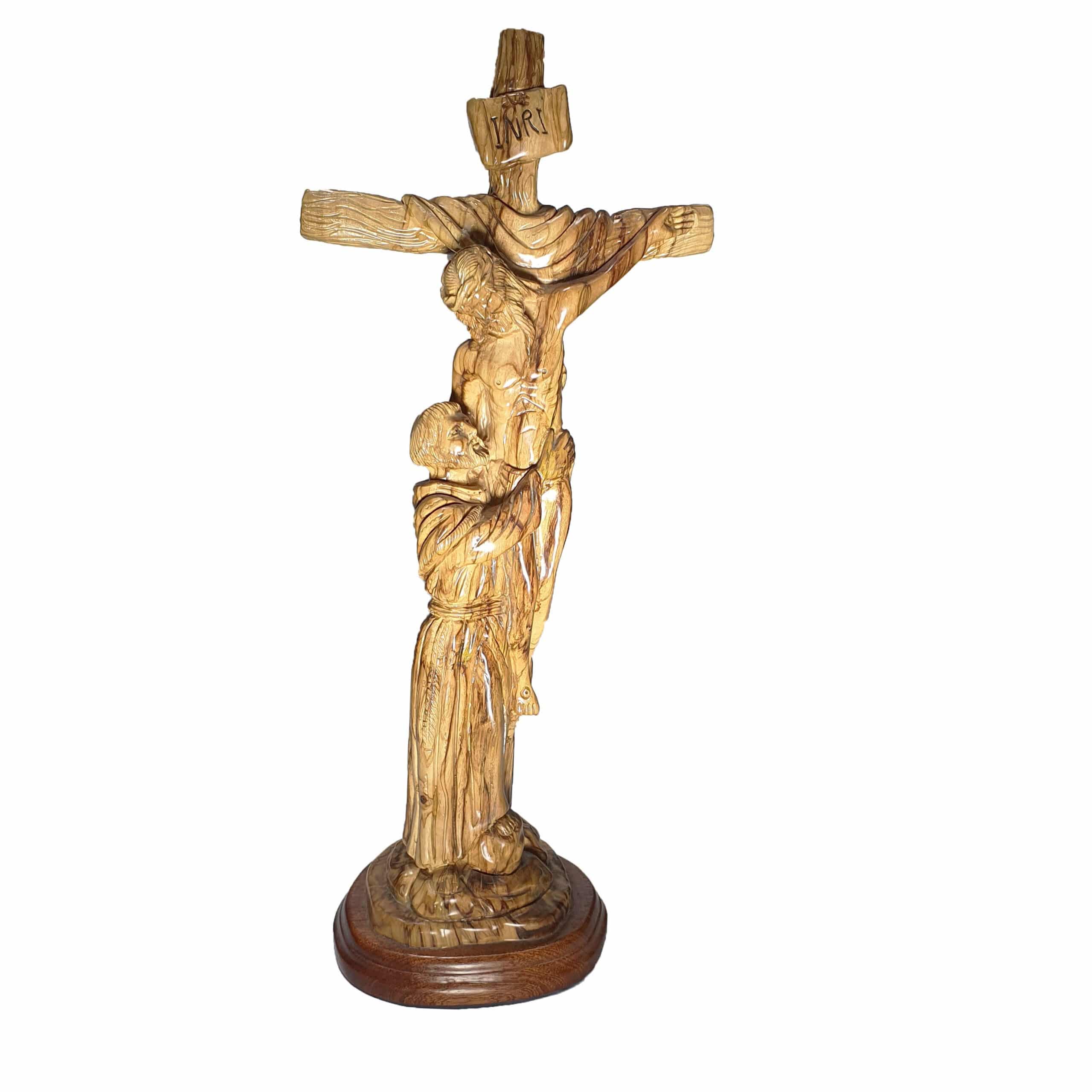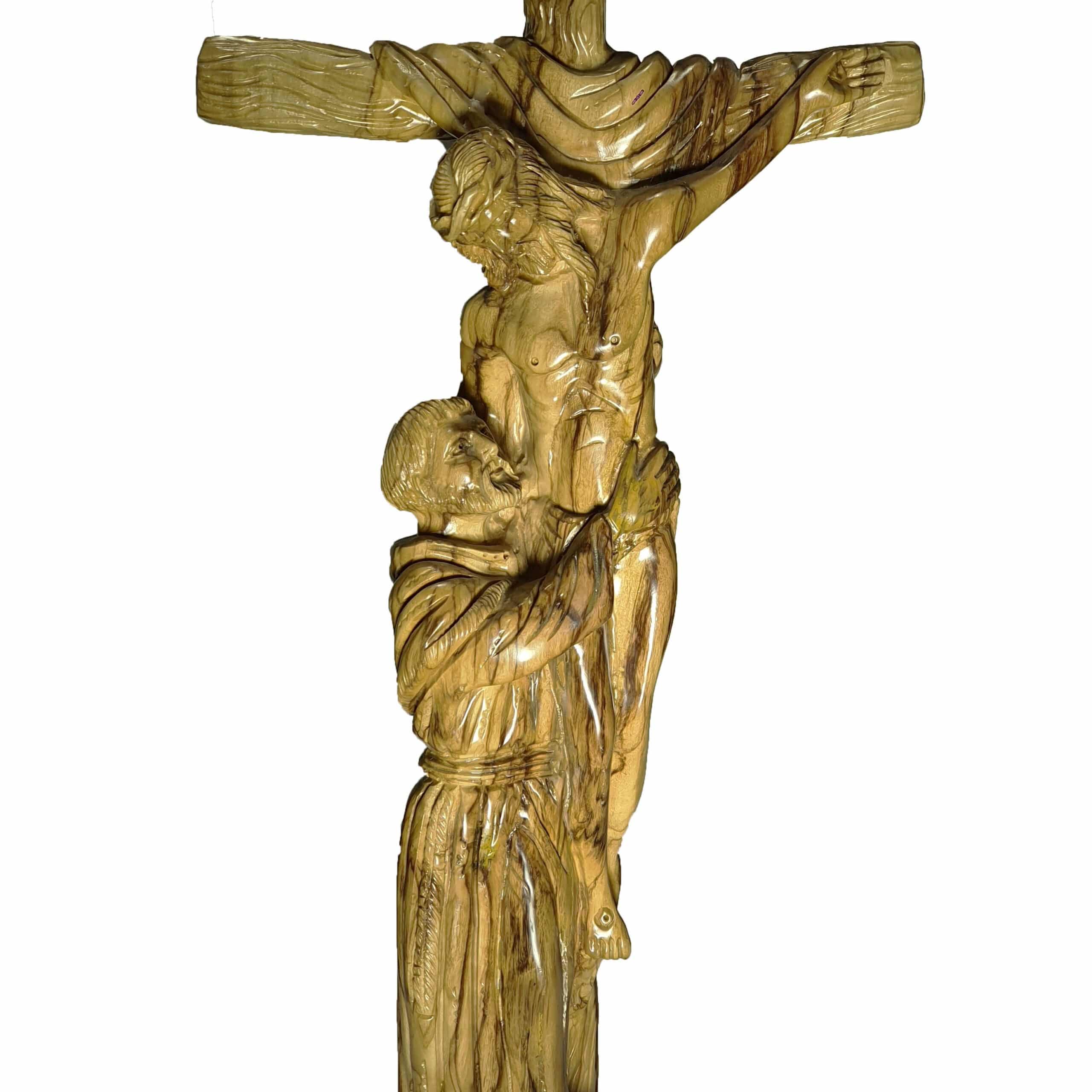 Olive Wood Statue of Saint Francis of Assisi Embracing the Crucified Christ